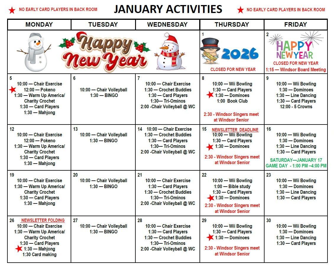 Games will be on Fridays, at 1:30 p.m.